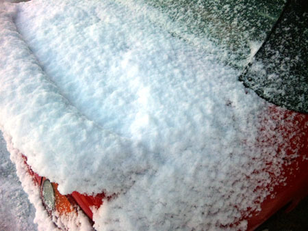 昨日少し解けて、その上に新しい雪が積もったのでこんな感じに。