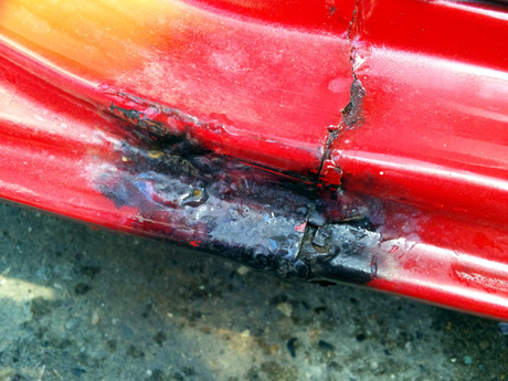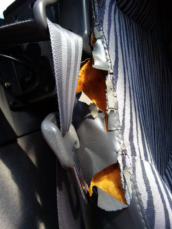 見るも無残な運転席シート。