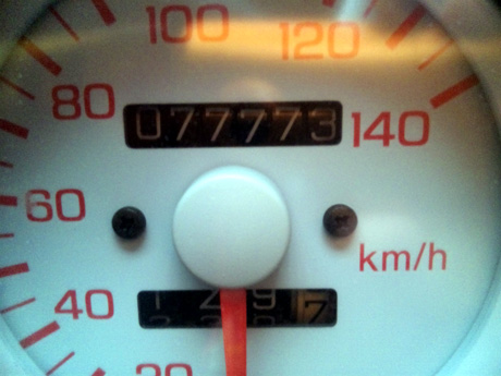 外出先で気がついたら、総走行距離が77777km目前!